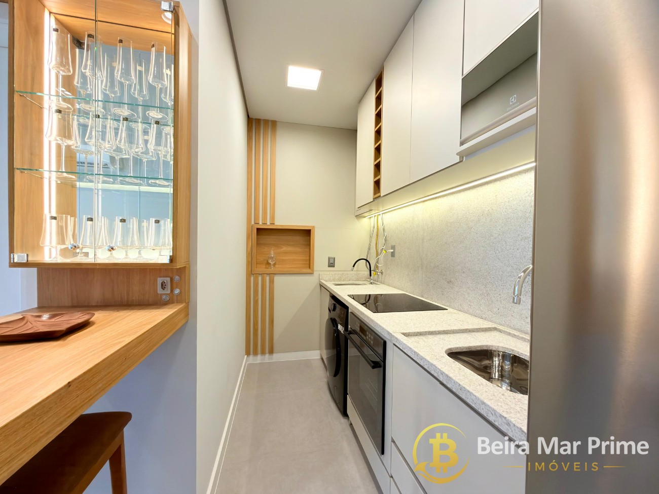 A cozinha é equipada e bem distribuída, trazendo praticidade ao dia a dia, enquanto o dormitório oferece conforto e tranquilidade, com ótimo aproveitamento de espaço.