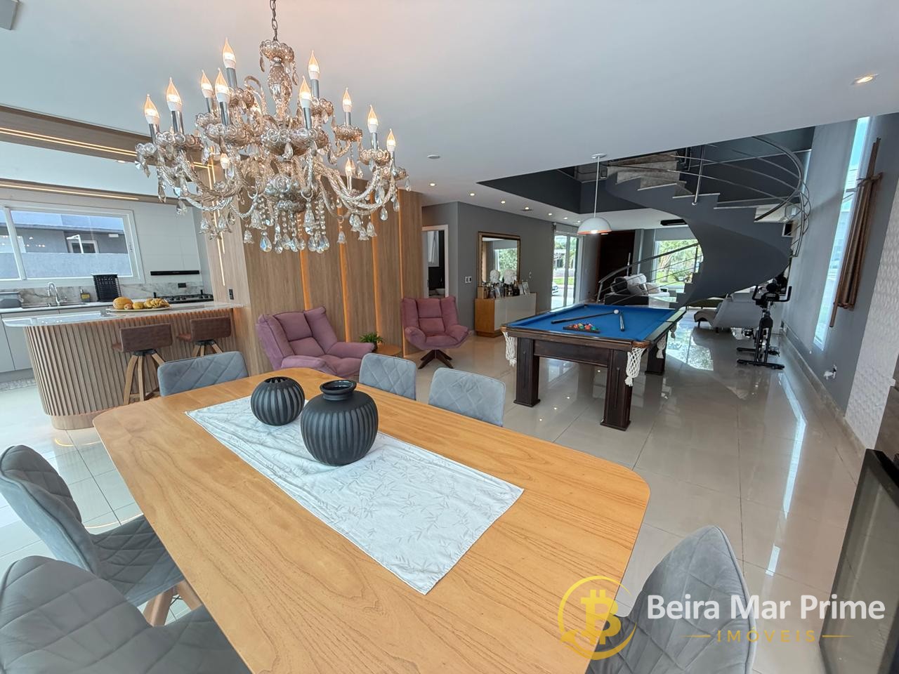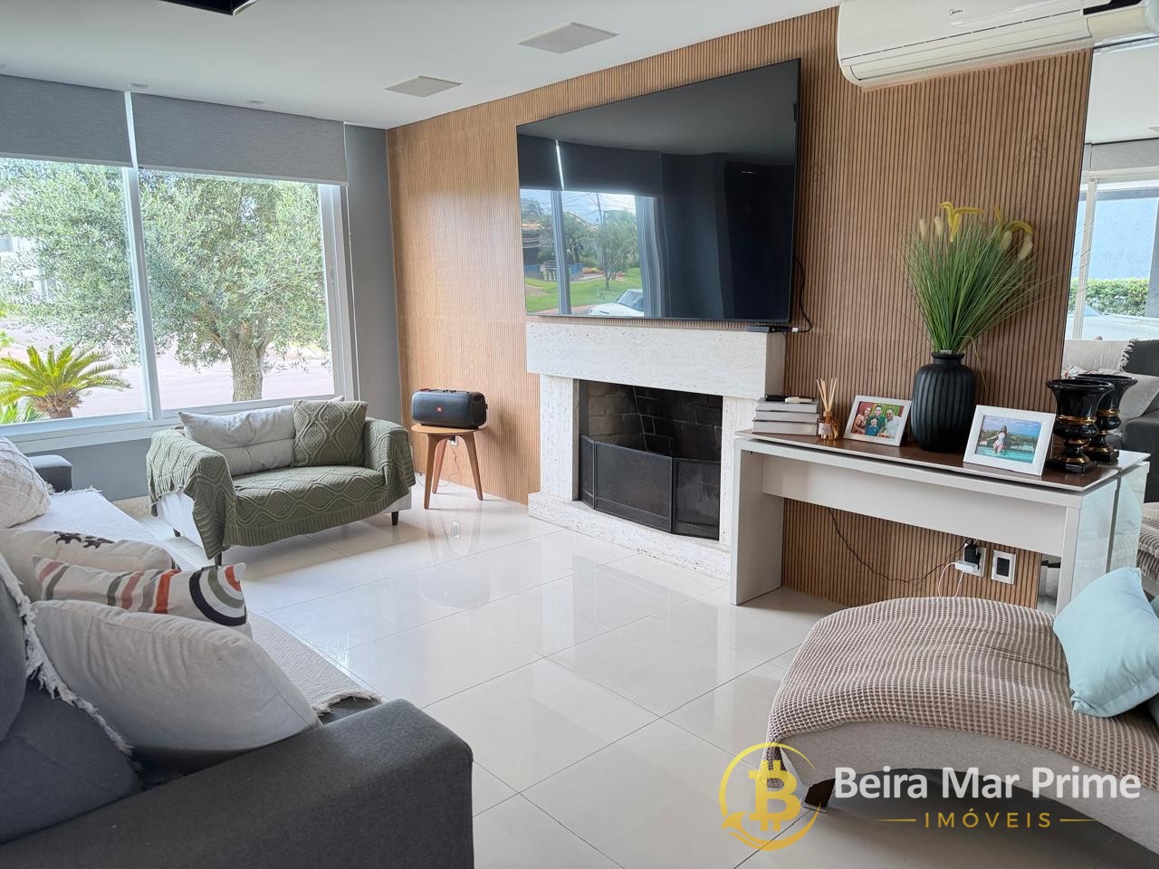 Casa de alto padrão com 4 dormitórios, totalmente mobiliada, localizada em condomínio fechado com segurança e infraestrutura completa.