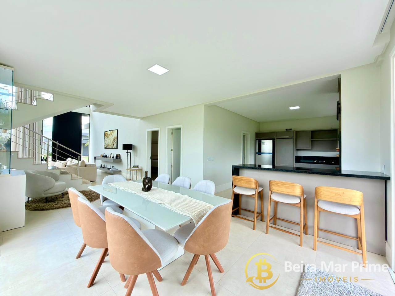 A área social é integrada e muito bem distribuída, com living espaçoso, ambientes harmoniosos e decoração de bom gosto, proporcionando elegância e aconchego. A cozinha é funcional, totalmente equipada e integrada aos demais ambientes, ideal para quem valoriza momentos de convivência.