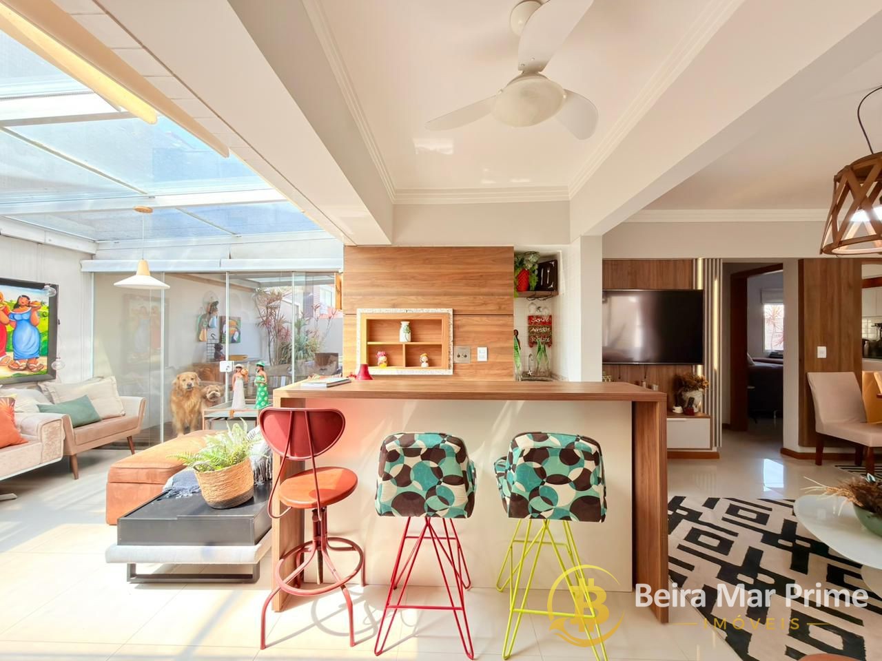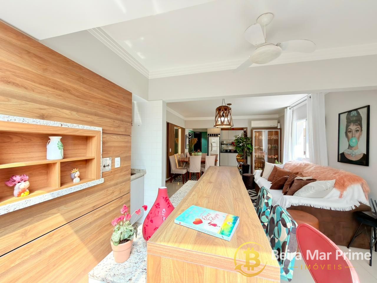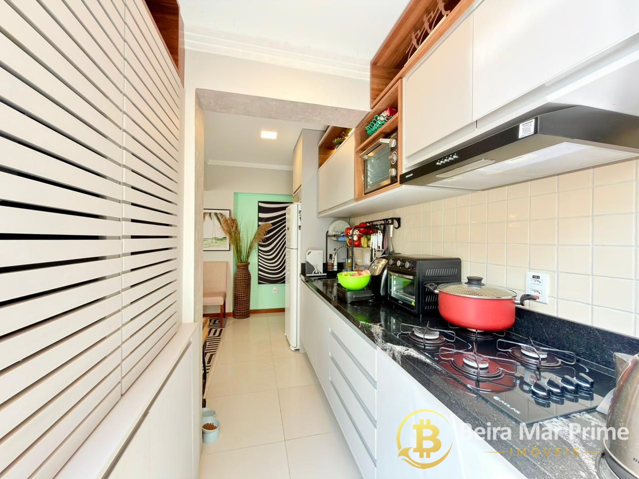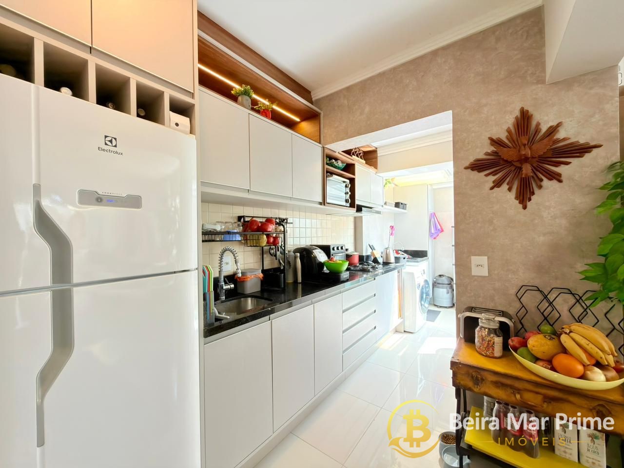 A cozinha é funcional e completa, equipada com eletrodomésticos e armários sob medida, integrando-se perfeitamente à área social. Os dormitórios oferecem conforto e tranquilidade, com mobiliário de qualidade e ótima iluminação natural.