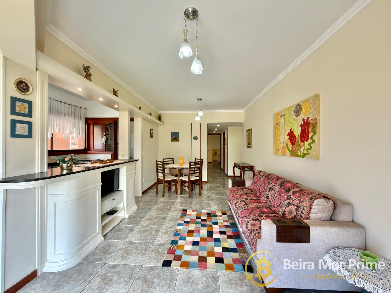 O imóvel conta com ambientes bem distribuídos, living amplo e aconchegante, perfeito para reunir família e amigos, além de uma decoração harmoniosa que valoriza cada espaço. A cozinha é funcional e equipada, integrada à área de serviço, proporcionando praticidade no dia a dia.