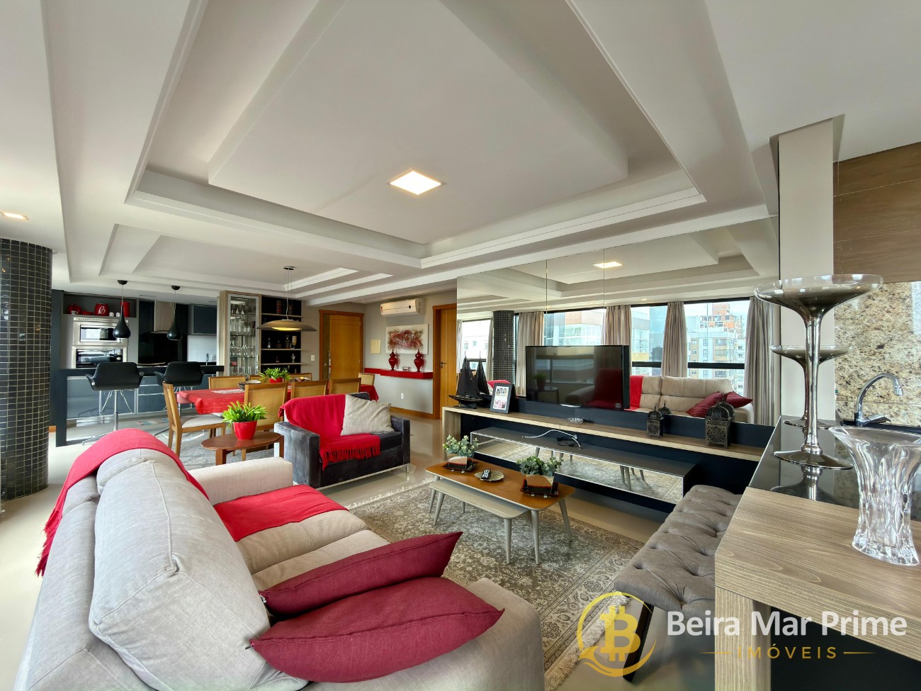 Apartamento de 3 dormitórios, totalmente mobiliado e decorado, com projeto pensado para oferecer conforto, sofisticação e funcionalidade. O living amplo integra sala de estar e jantar, com decoração moderna, iluminação planejada e excelente aproveitamento dos espaços. A cozinha é completa, equipada com móveis sob medida e eletrodomésticos, conectada à área de serviço de forma prática.