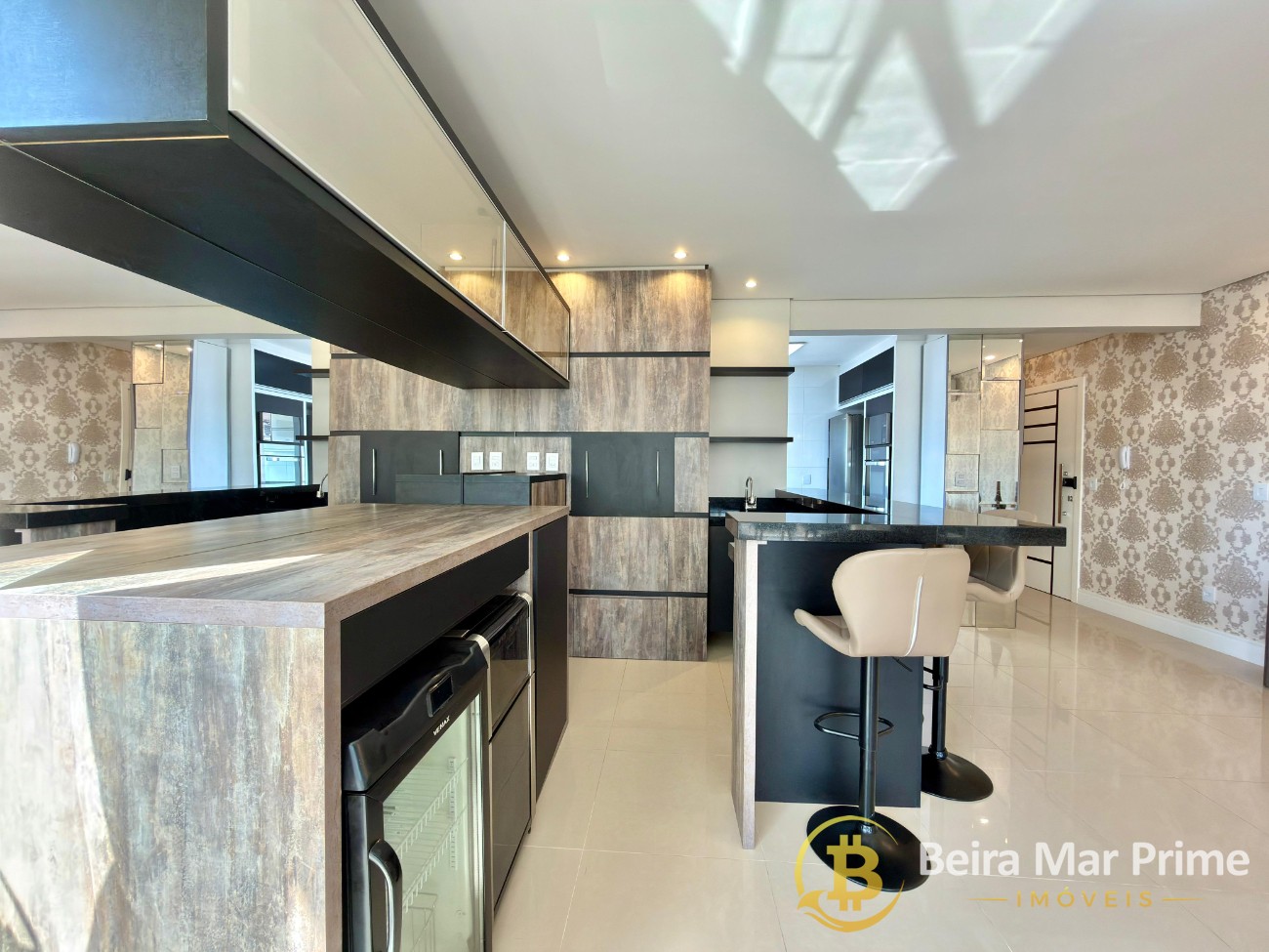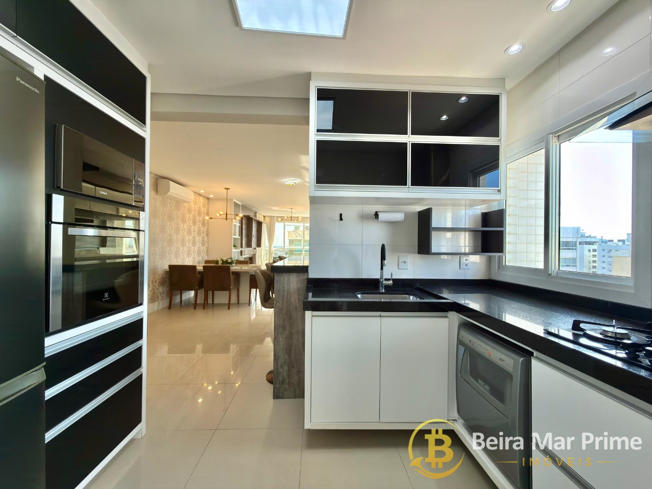 A decoração moderna e o mobiliário de qualidade proporcionam um ambiente acolhedor e pronto para morar. A cozinha é funcional e bem equipada, conectada à área social, ideal para receber amigos e familiares.