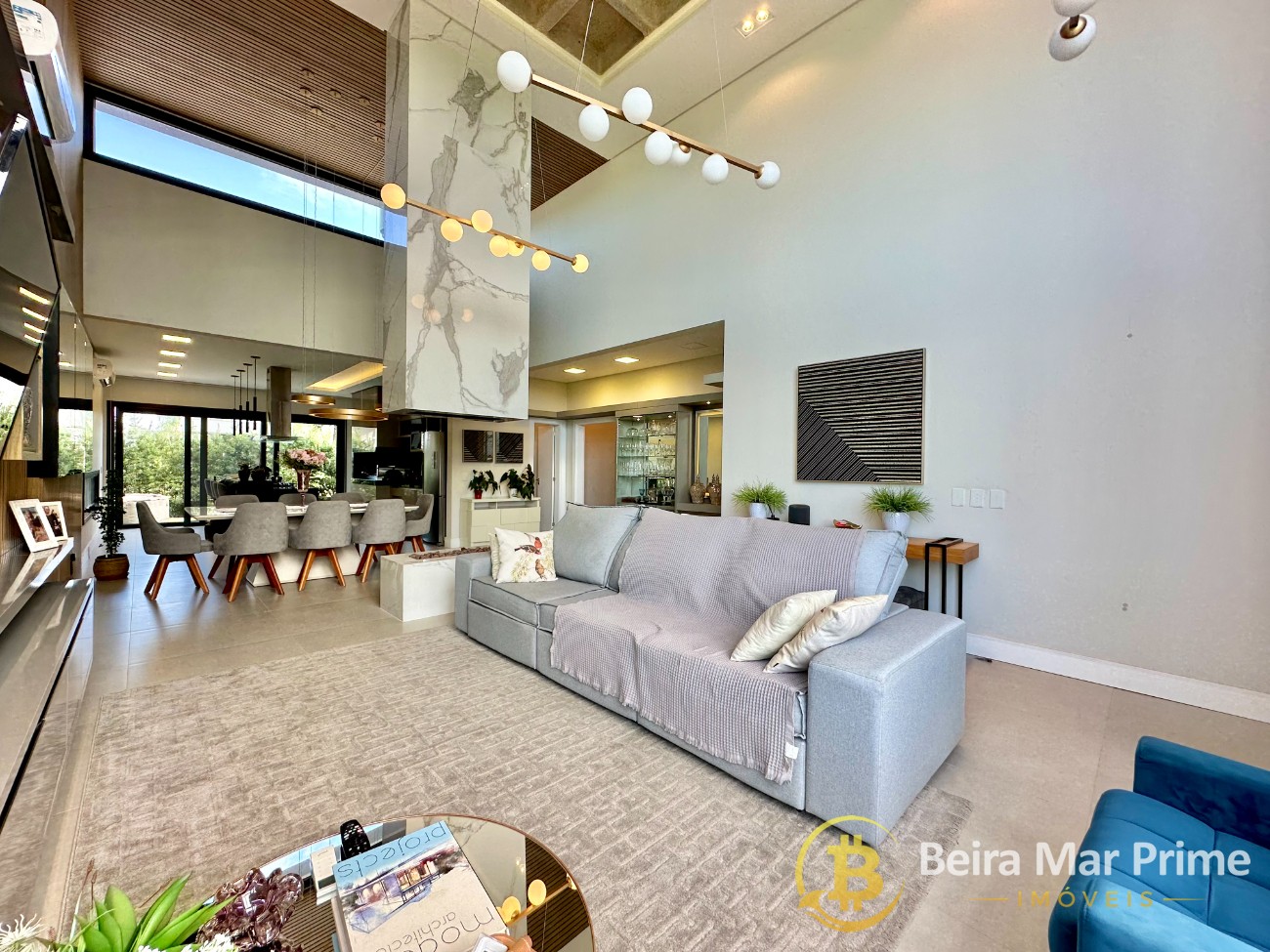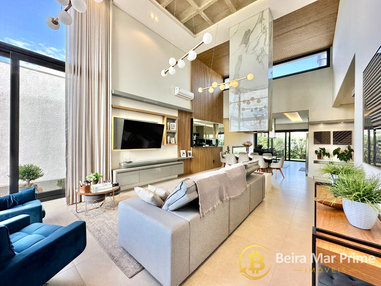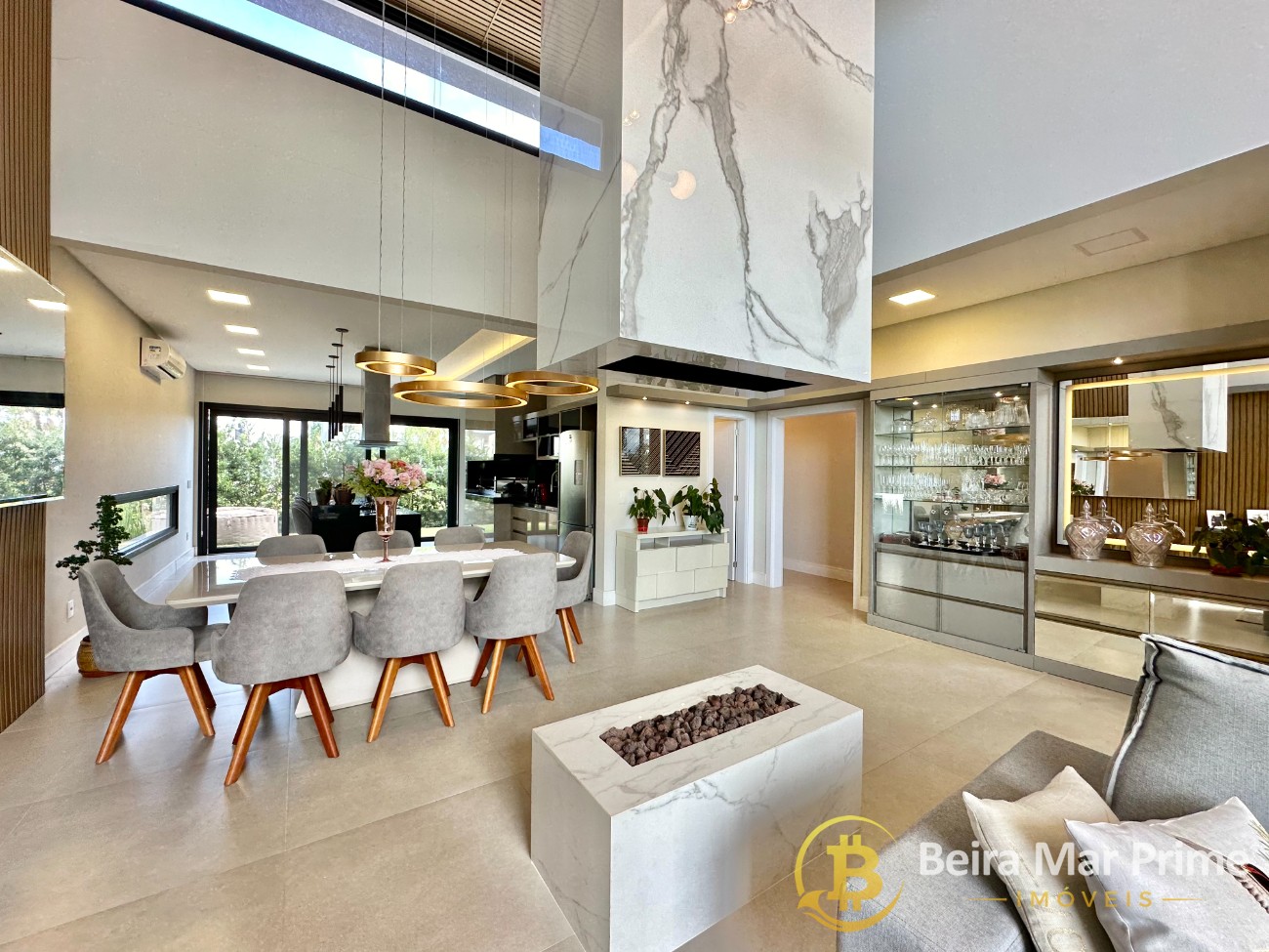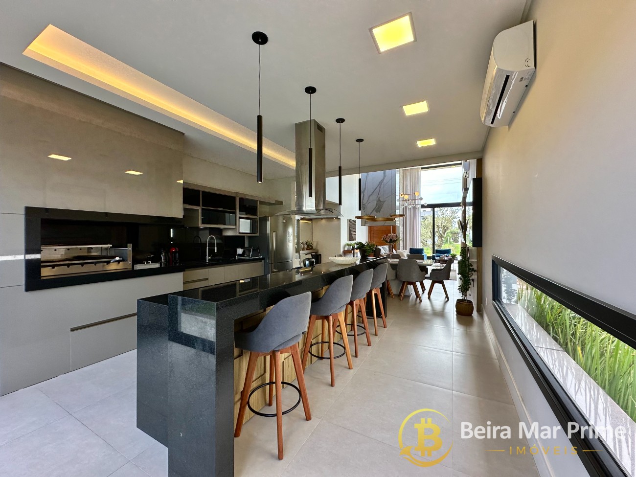 A área social possui living espaçoso, integrando sala de estar e jantar, com decoração moderna e ambientes aconchegantes. Cozinha planejada, funcional e equipada, ideal para o dia a dia e para receber convidados. Espaço externo agradável, perfeito para momentos de lazer e convivência em família.